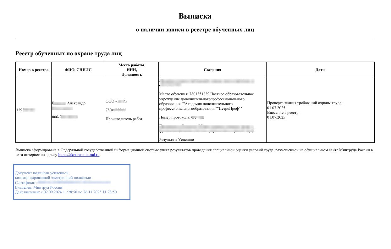 Это обучение помогает существенно снизить риски травм, профессиональных заболеваний и аварий на рабочем месте.